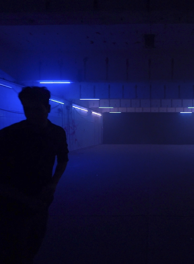 Roland Batroff bespielt den Innenhof mit Lichtkunst.